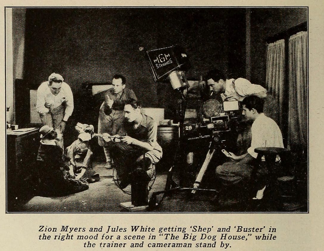 Later in 1929, Jiggs appeared with several other dog talents in a series of shorts originally called Hot Dogs!, later renamed the Dogville Comedies. A piece entitled “Hollywood Goes To The Bow-Wows” by Marie House found in the December, 1930 issue of Screenland profiles how Zion Myers (brother of star Carmel Myers) and Jules White conceived and co-directed the series, which were often short, melodramatic parodies of popular films.