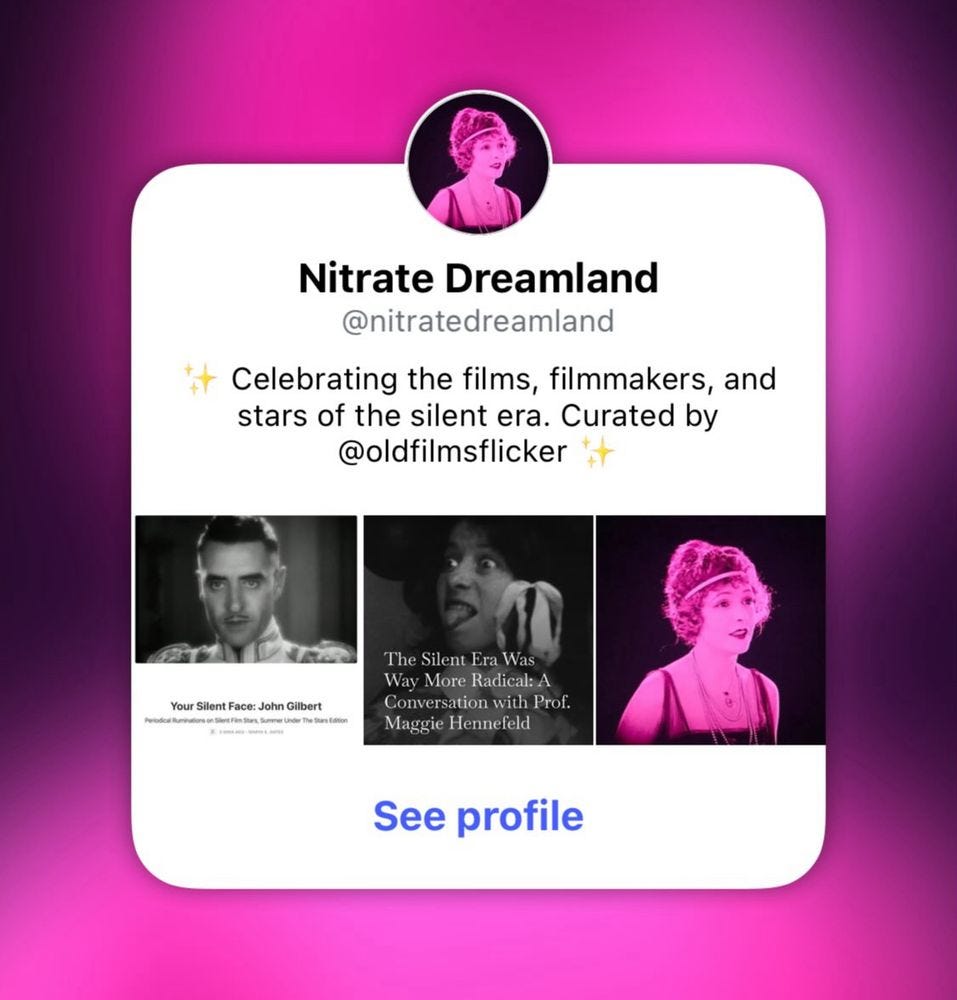 I started an Instagram account for my love of the silent era, so if you’d like more micro-doses of silent film daily, give ✨ Nitrate Dreamland ✨ a follow.