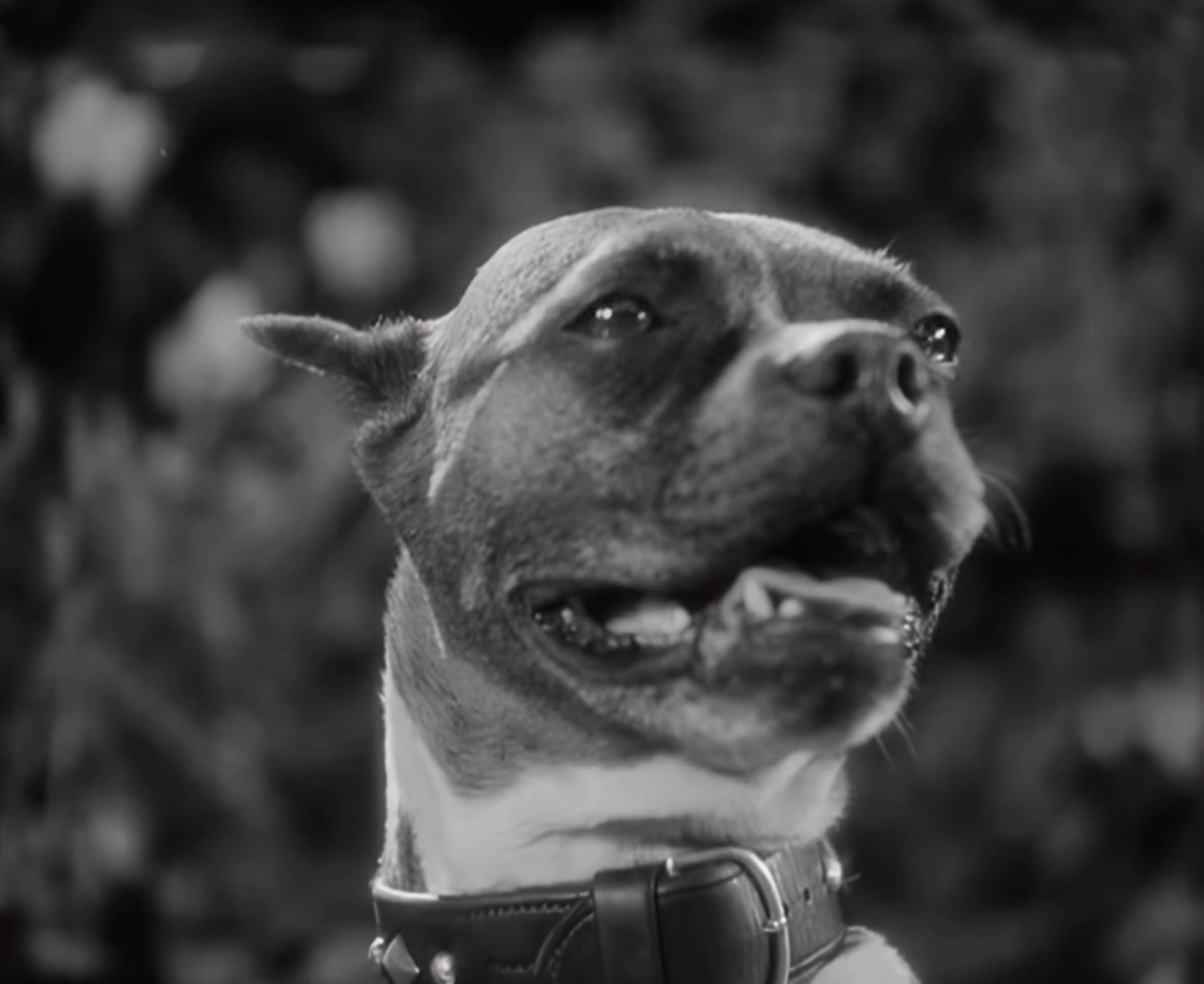 With the advent of sound, Jiggs made the transition into the talkies seamlessly. His first major role was co-starring opposite Maurice Chevalier in Ernst Lubitsch’s pre-Code comedy The Love Parade (1929). In this film Jiggs plays Chevalier’s loyal dog companion. When Chevalier’s character must leave Paris after one too many scandals, he bids his farewell to the ladies of Paris. Jiggs is given a similar scene, barking his goodbyes to his canine comrades. Along with helping his master with his shenanigans, Jiggs also flirts with Queen Louise of Sylvania (Jeanette MacDonald)’s poodle. Later in the film, Jiggs is Chevalier’s only friend, and the two share a sweet scene in the garden, under the moonlight. Here Jiggs gets a great close-up and a moment to showcase his ability to do tricks on command.